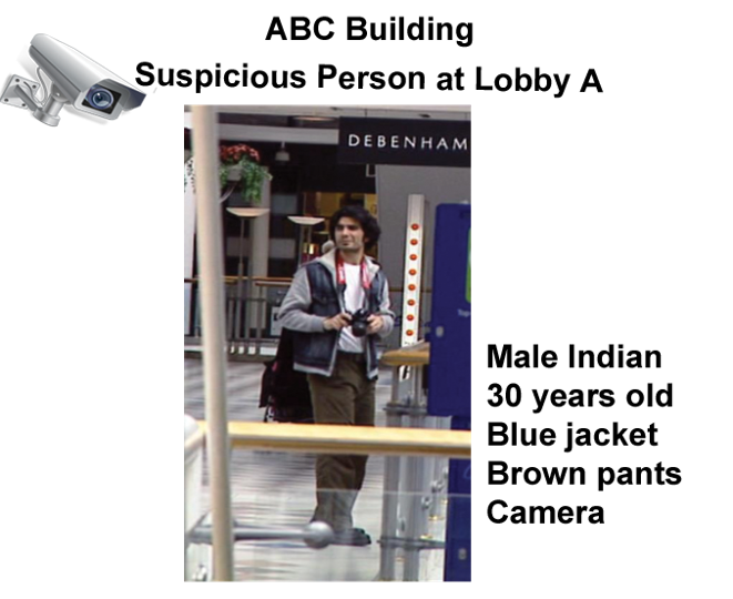 You observed a suspicious person (left picture) taking photo of the permises. Answer the following questions, as per the picture.